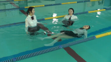 基礎練習は制服水泳