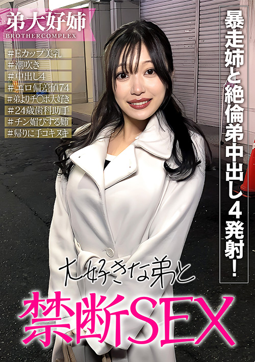 弟との関係改善をしたい!もっと言うと弟となら何でもできる!と弟をオカズにしてオナニーもしたことがあると言う強者変態の姉!【ハイライト】テクに自信が無い姉と姉じゃ絶対に勃起しない!と言い張る弟が賞金かけて挑戦!・ズボンの上からチンポを撫でまわして「確認するの!!脱いで!」とパンツを下ろして手コキをはじめ「お姉ちゃんで興奮した?嬉しいなぁ~」と大はしゃぎ!・弟の意思は全く無視して「全部脱いで!!」と指示からもチンポを美味しそうにフェラ・ただ弟とヤリたくなった姉「いまゲームの事考えんでいいから!」とデンマ責め要求・デンマで「ダメ気持ちい出ちゃう!」と絶叫しながら潮吹きアクメ・「一緒にもっと気持ち良くなろか?」と弟に責めさせて変態全開のイキまくり・チンポを弄りながら「どうする?コレ?入れちゃうよ!」と誘惑・「ヤッター!」と仰向けになりマンコ広げてチンポ受け入れ態勢・下手くそな腰振ふりに「上手!気持ちい!」と弟を鼓舞してイキまくる姉。早漏弟に「いいよ出して!」と中出し懇願・弟の精子を子宮で受け止めてご満悦の姉!今度は弟の要望で騎乗位で挿入・初めての騎乗位気持ちいい?と弟の上でガンガン腰を振って夢中にアクメを求める姉・姉のスケベっぷりに興奮してバックで無申告中出し・疲れ果てた弟に「だらしないなぁ~」と押し倒し騎乗位で間髪入れずに3回戦・一心不乱に腰振りまくりそのまま中出し・さすが弟!!変態姉と同じ血を受け継いでいるようで絶倫覚醒!「もう一回!」と正常位で挿入!・イキまくる姉と必死に夢中に突きまくる弟!大好きホールドで4発目の中出し・シャワーを浴びて着替えながら仲直りのキスをしてたらまたお互い興奮してきてチンポを激しく手コキしてたら飛距離1メートルのザーメン発射!