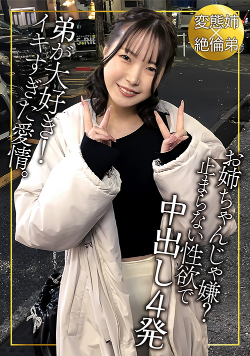 弟が好きすぎて媚て距離を縮めようとしても上手くいかずHゲームをしたら距離が縮まるのか?検証してみました!【ハイライト】幼少期に性のトラウマを姉から植え付けられて嫌いになったとまぁまぁ怒っている弟・メス化した姉のグイグイくる責めにドン引きして嫌がりながらチンポがビンビンでも立っていないと言い張る弟・当たり前のようにチンポを咥えて弄り倒す変態姉・呆れる弟に無理やりマンコを触らせて喜びHな声を出す・マンコを触らせながら足でチンポを弄りながら絶頂・「立ってるし濡れてるしもっとHなコトしたくない?」と更に挑発・パンツを脱いで弟の顔に跨り「舐めて!!」と顔騎クンニ○要する変態姉・フェラで出そうで出ない弟に「舐めているだけじゃあれだから中でイク?」と跨って弟の意思ガン無視して挿入・調子に乗ってデンマを結合部に当ててアクメからの追いアクメ!釣られて弟中出し・「ピル飲んでないのに中に出しちゃったね!!」と弟に詰めたと思ったら「もっとスル?」と尻突き出して立バックで2回戦開始・「姉弟だから中出ししても妊娠しないんじゃないかな?」とイミフな理論で2発目もしっかり中出しw・「まだ立ってる!今度はソファでしよ!」と背面騎乗位で挿入・イカれた姉が背面騎乗位で写メを撮り始め弟チンポ立たせながらドン引きしながらもしっかり3発目も中出し・事後二人でシャワーを浴びにいって興奮冷めやらぬ二人は風呂場でまたおっぱじめて立バックでダメ押しの中出し4発目!