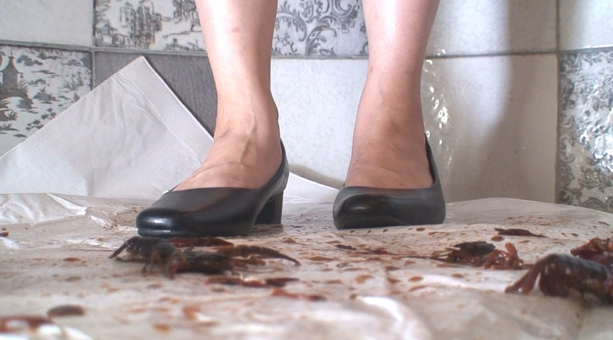 今回は残酷な、すぐに踏み潰したがるあみちゃんが次々に踏んでいきます。5匹いたと思ったらもうすでにぺちゃんこに潰され、文字通り駆除されました。その後も置いていくと何の躊躇もなく、一気に踏み潰し、その感触が楽しくなってきたみたいです。本当に駆除しないといけないので罪悪感も無く、ただただ踏み潰すのを楽しむあみちゃん、横には大量の残骸がどんどん増え続けるのでした。パンプスの押さえつける力、左右にねじる力も残酷極まっています。