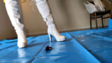 体液まき散らして潰れちゃった。お役ごめーんバイバーイ!ジョギングしながらハアハアしながらスポーツのように踏み潰すみくちゃん。ハサミを上げて必死に抵抗するザリガニ、厚いブーツの底にはいとも簡単に潰されていき、言葉責めも残酷。痛い?怖い?ブチブチブチ、ハサミを踏み潰され、ひっくり帰って戦意喪失しているザリガニのおなかにゆっくり足を乗せ、じっくり体重をかけてミシミシ音を立てても直ぐには潰さずに、じわりじわりと潰れる感触を楽しみ、最後は一気に原型なくなるまで潰し、さらに左右へグチョグチョ。両足でジャンプしたりやりたい放題。