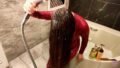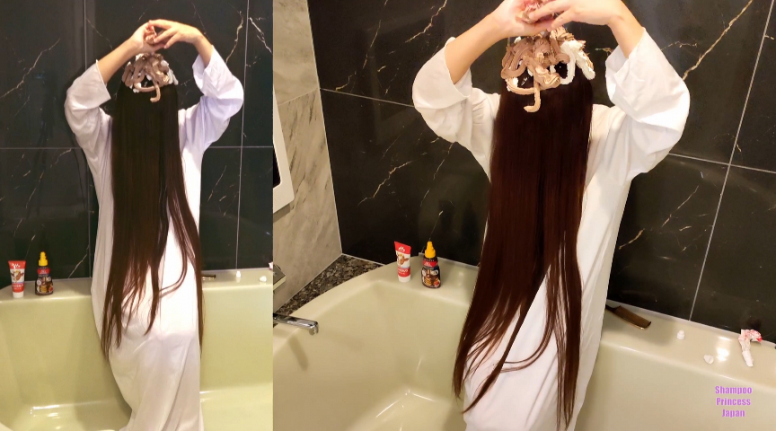 きっと来る、きっと来る…映画のシーンから飛び出して、あの○子が目の前に。しかもミステリアスな長い長い黒髪を洗髪しているところを覗き見。髪だけでなく、衣装も濡れて透けていくシーン、本家の映画では絶対に視聴できませんよね。